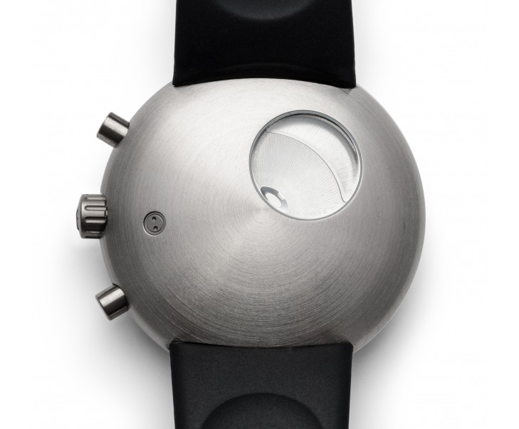 Hemipod gen3, szwajcarski automatyczny zegarek tytanowy, chronograf z czterema subtarczami, 44 mm, wyczuwalny na nadgarstku. Tytanowy pasek z gumy z bolcem.